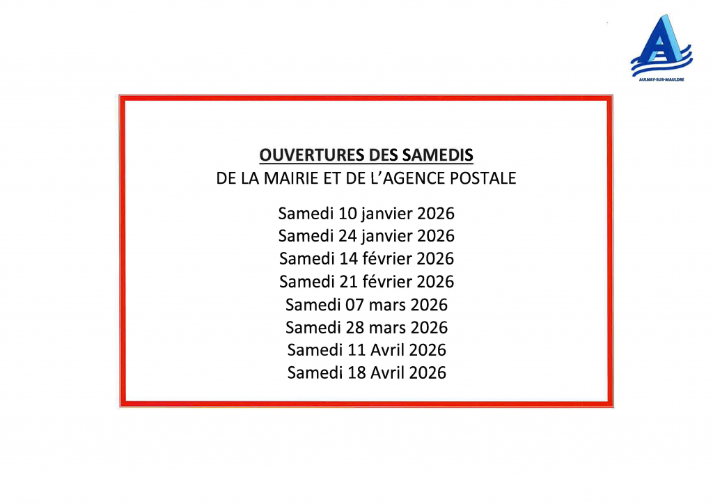 3. Ouvertures des Samedis de la Mairie et de l’agence Postale 2026